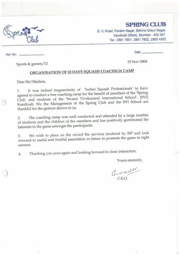 Conducting Squash Camps, PROSQUASH etc since 1997